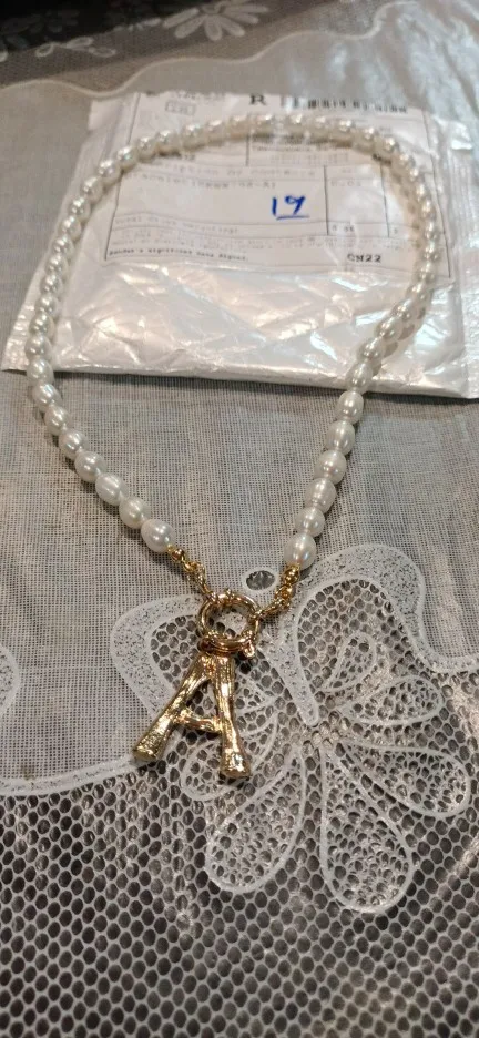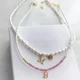 Collier ras du cou en perles véritables, avec initiale de l'alphabet, en acier inoxydable, avec boucle, pendentif de couleur rouge, bijoux de perles d'eau douce, A-Z