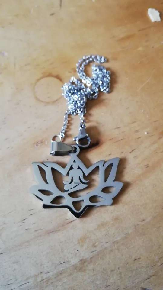 Colliers en acier inoxydable avec pendentifs pour femmes, bijou couleur argent, style Yoga Lotus, Harajuku, N18233