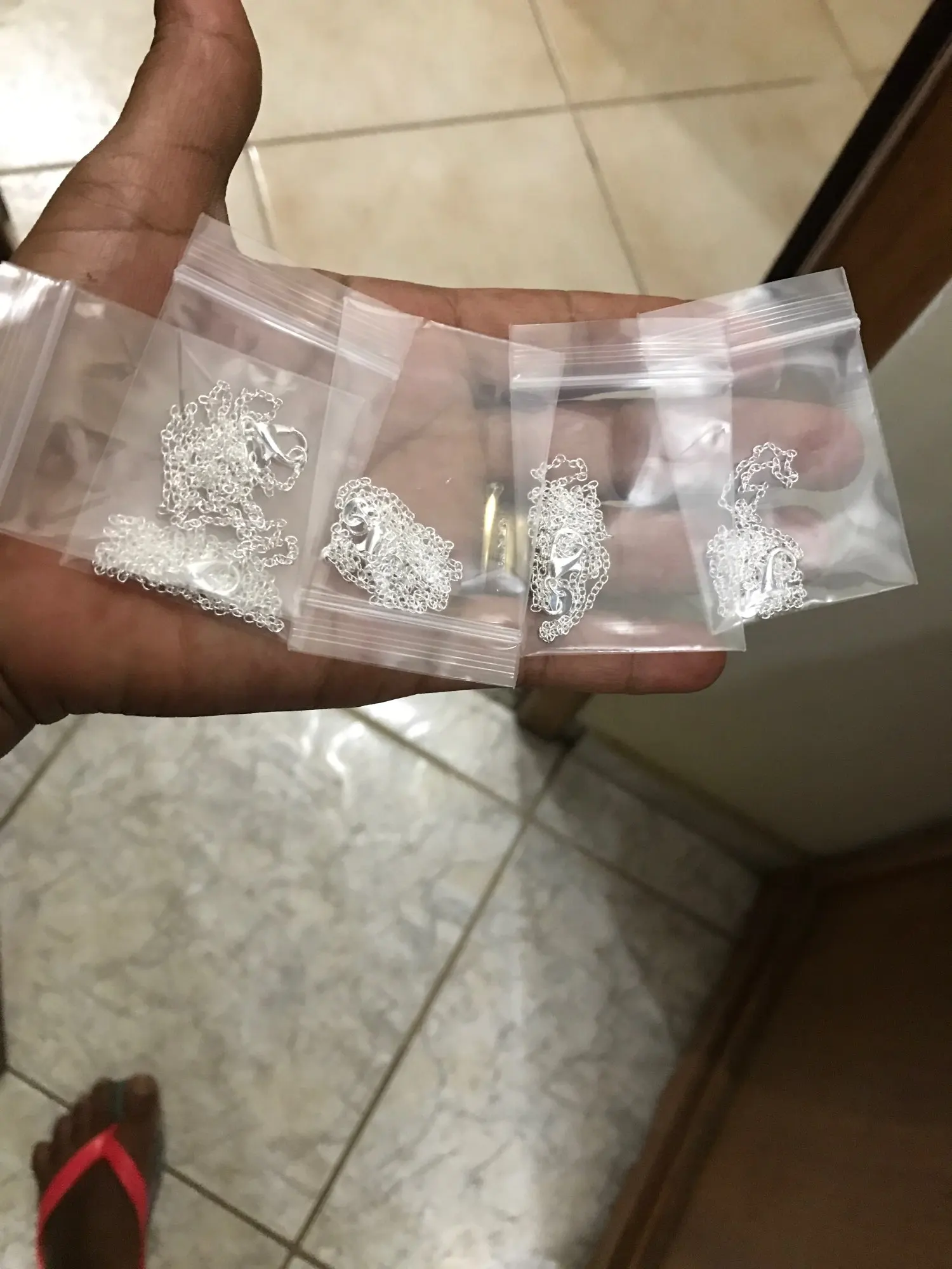 Très jolies les chaînes. J'ignore si elles tiennent niveau couleur argent dans le temps. Pour l'instant je suis satisfaite. Envoi plus d'un mois... Dommage.