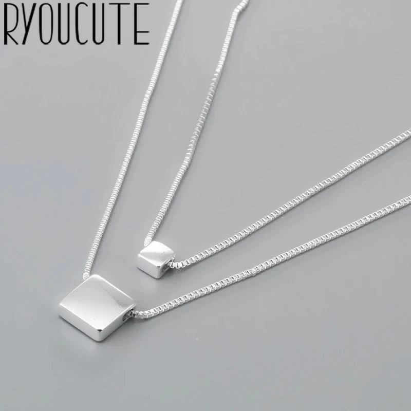 Colliers multicouches couleur argent pour femmes, nouvelle tendance, chaînes, boîte en forme de Cube, bijoux, cadeaux de fête