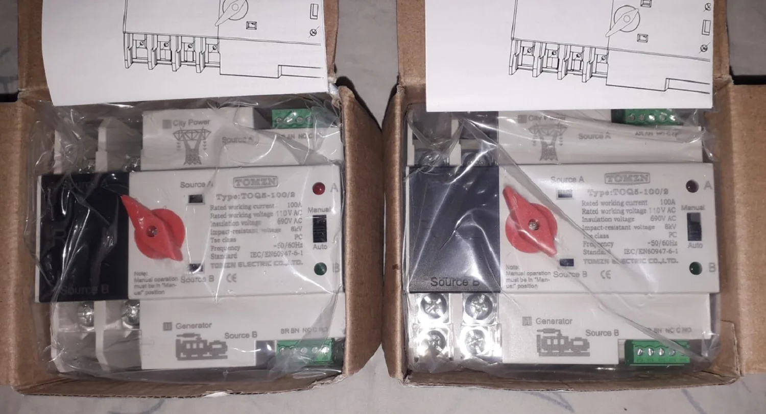 Commutateurs électriques ininterrompus 50-60hz 2P 63A 100A de transfert automatique de double puissance d'ats de Rail monophasé de TOMZN Din