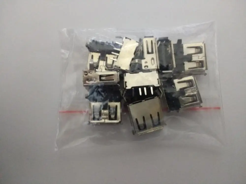 Connecteur USB 2.0 Type A femelle G54 2 pieds 90 degrés, 10 pièces, 4 broches, connecteur à broche incurvée, connecteurs à monter soi-même