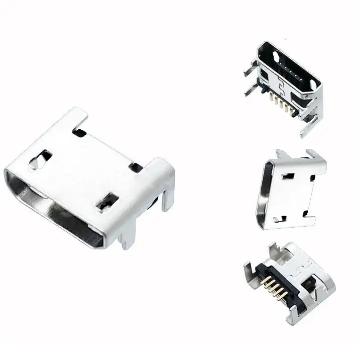 Connecteurs à souder Micro USB Type B 5 broches, 4 pieds verticaux, pour téléphone portable, 10 pièces