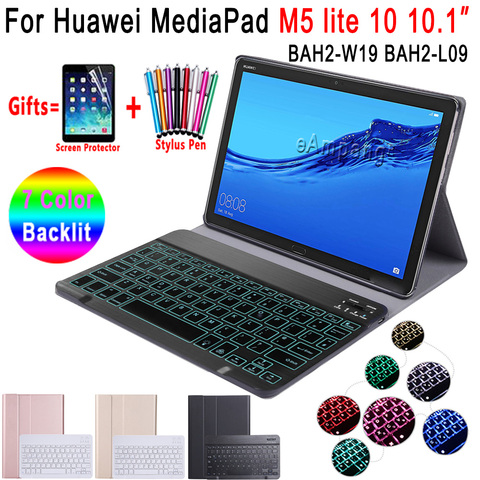 Coque de clavier rétroéclairée en cuir, pour Huawei Mediapad M5 Lite 10 10.1 BAH2-W09 BAH2-L09 BAH2-W19