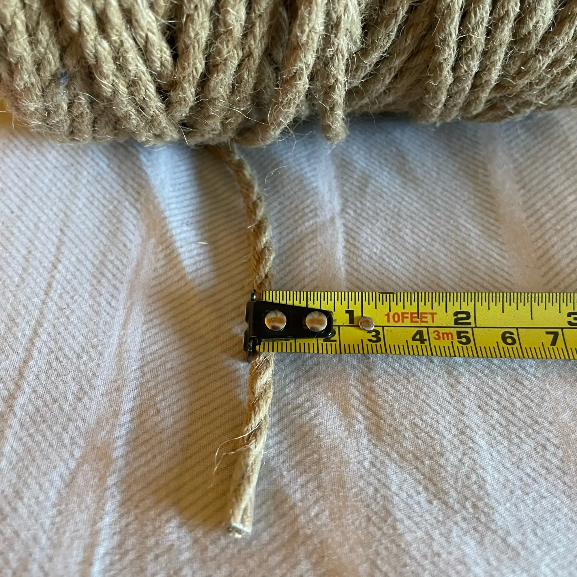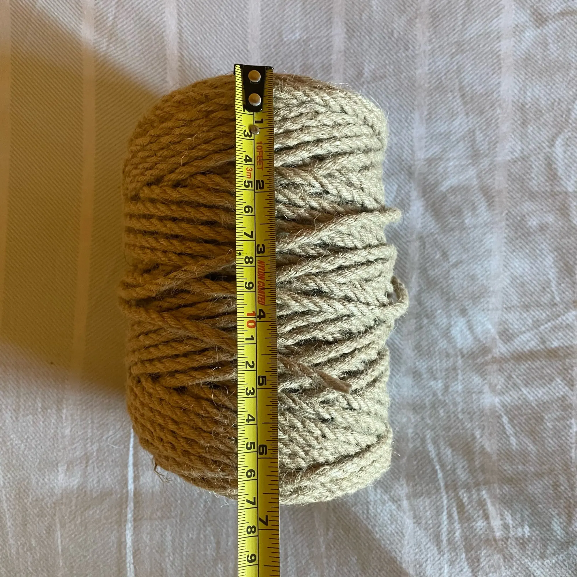 j'ai pas mesuré si les 100 mètres sont là, mais la bobine est bien fourni et épaisse, le sisal semble de qualité et je le testerai en remplacement sur un arbre a chat, puis je verrai si il est résistant et j'ajouterai un deuxième commentaire, pour l'instant tout semble parfait.