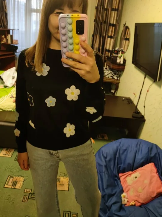 Coréen doux émolurie pull pull de haute qualité femmes élégant col rond tricoté hauts pour automne hiver C-089