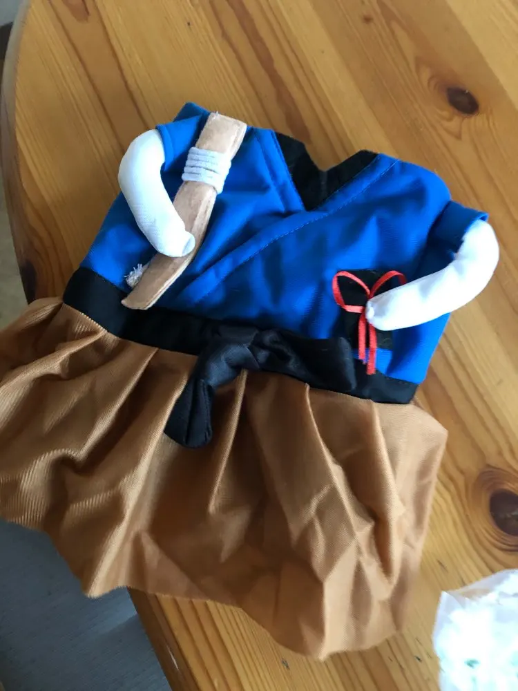 Très bien reçu, vraiment sympa. attention tout de fois si votre chat s'agite un peu, le costume tombe. il est difficile à mettre.