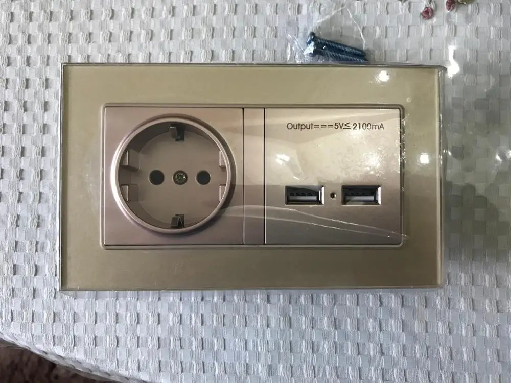 COSWALL – prise de courant murale Standard ue, double USB, Port de Charge à Induction intelligent, pour Mobile, panneau en verre cristal 2.1a