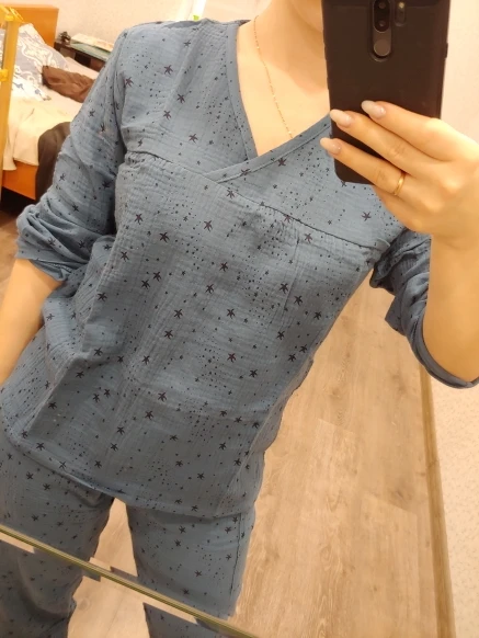coton lavé à l'eau pour pyjama femme pijamas women pyjamas women Pyjamas vêtements de nuit hiver Pijamas Texture crêpe gaze pantalon à manches longues pyjama col en v
