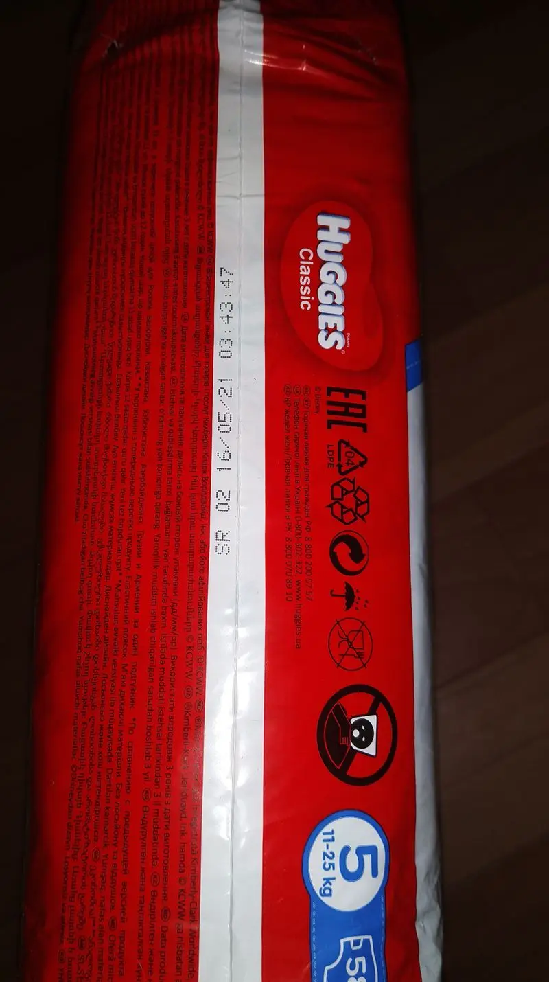 Couches jetables HUGGIES Classic 5 (11-25 kg), 58