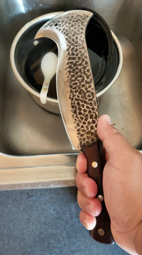 Je suis satisfait de la qualité de cet article. La lame est épaisse. Le bord est tranchant uniquement sur la partie intérieure. Au niveau de la courbe concave, le tranchant est beaucoup moins prononcé. Le manche est solide. C'est un bel outil. Merci.