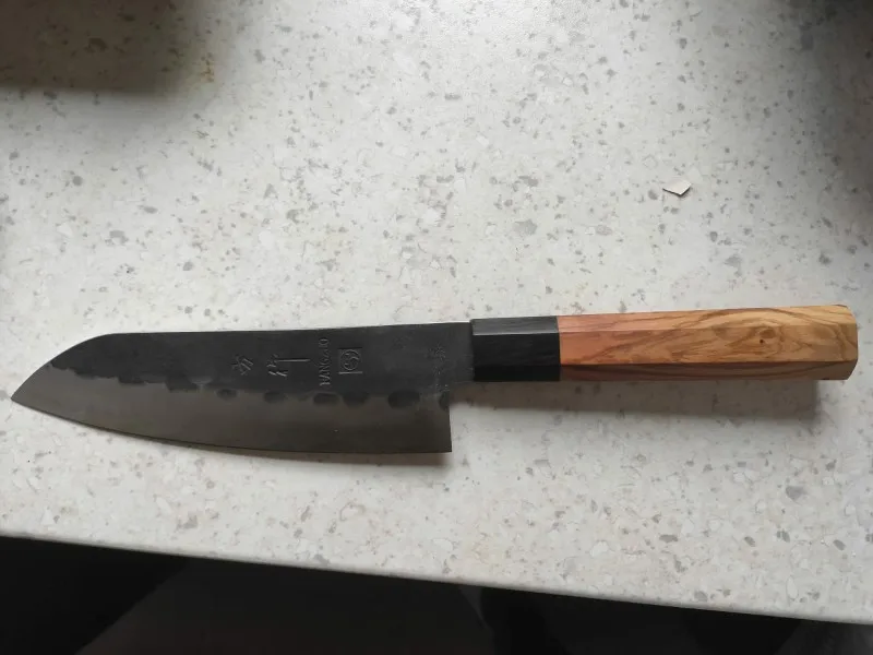 Couteaux de cuisine de Chef japonais, couteau Santoku fait main 7 pouces 3 couches AUS10 lame à haute teneur en carbone outils de tranchage de cuisine professionnels