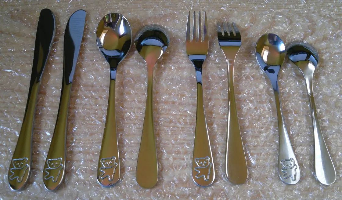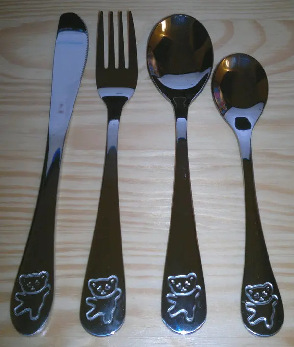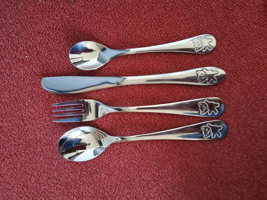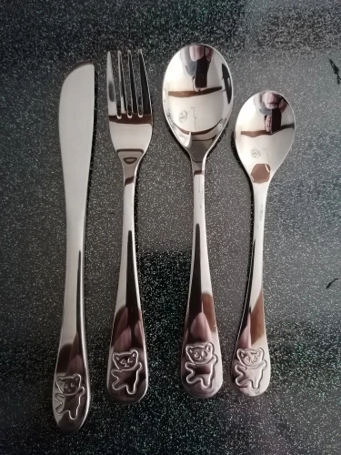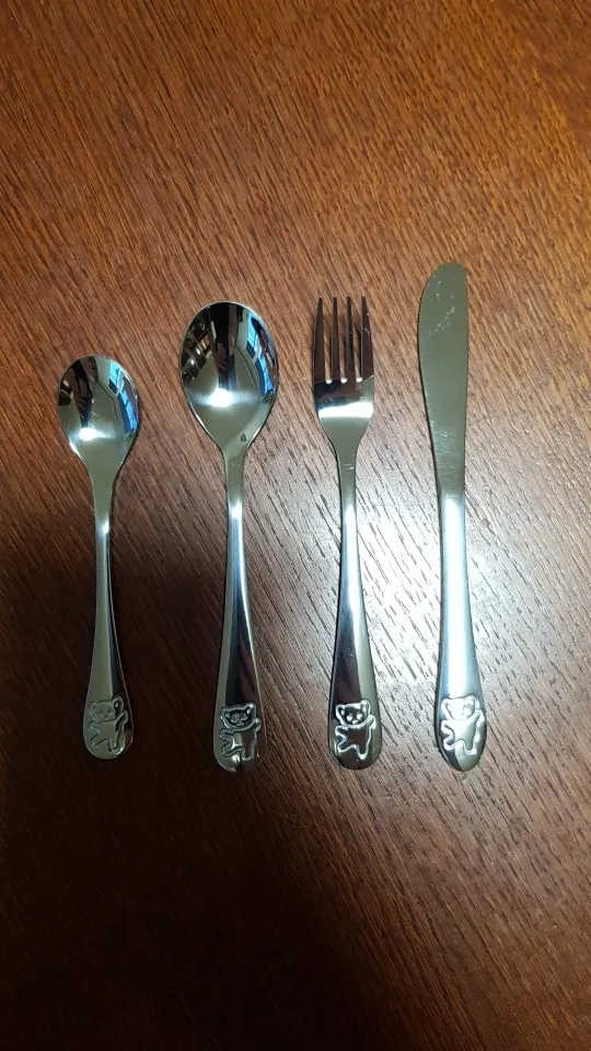 Couteaux fourchettes nourriture, service de couverts pour enfants en acier inoxydable 4 pièces dessin animé ours service de table