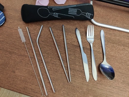 Couverts portables en acier inoxydable, fourchette cuillère couteau ensemble de voyage service de dîner, ustensiles réutilisables améliorés avec étui