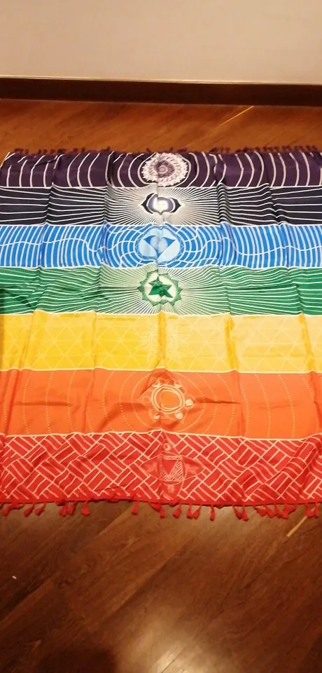 Couverture murale en Polyester de style bohémien, couverture Mandala pour l'inde, 7 chakras colorés à rayures en arc-en-ciel, pour voyage, pour la plage, tapis de Yoga, pour l'été