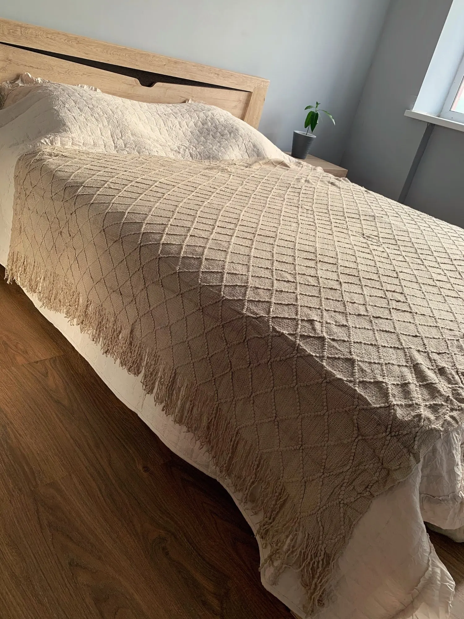 Couverture tricotée chaude et Portable, couleur unie/géométrique, couvre-lit en laine acrylique, treillis de maison avec glands pour le printemps et l'automne