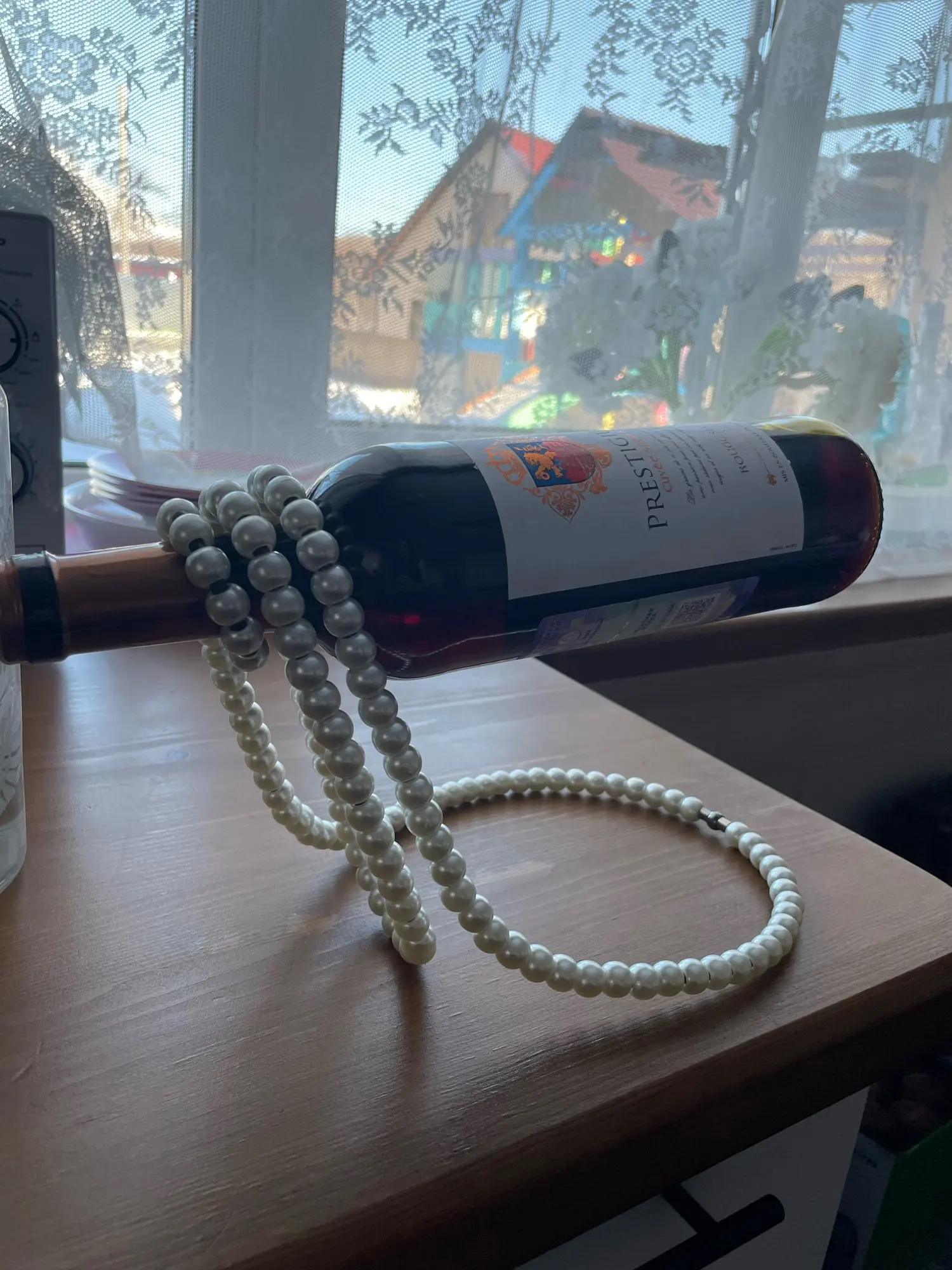 Creative doré perle collier en acier inoxydable casier à vin piédestal à vin support à pince Suspension Champagne Whisky petits ornements
