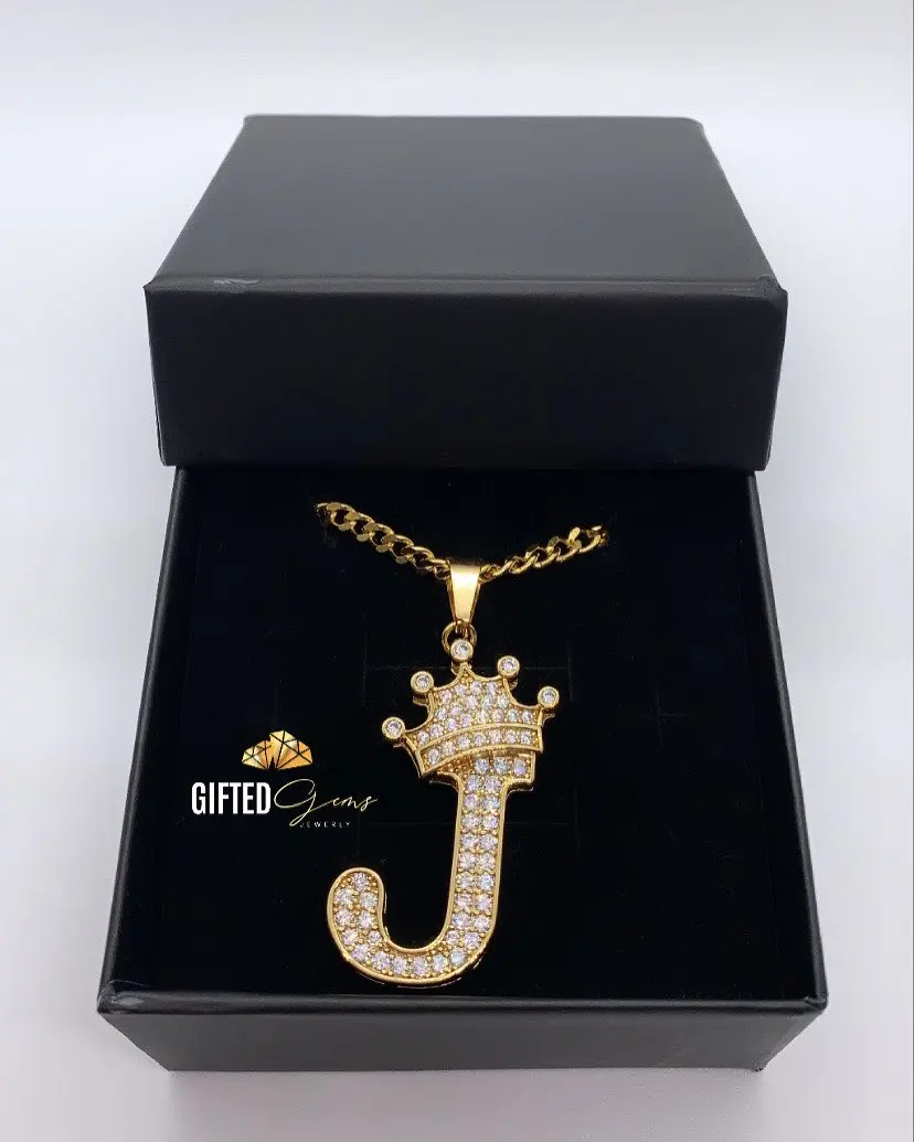 Cristal Zircon Alphabet pendentif colliers pour femmes hommes couronne lettre initiale Collier Hip Hop or chaîne Bijoux Collier Bijoux