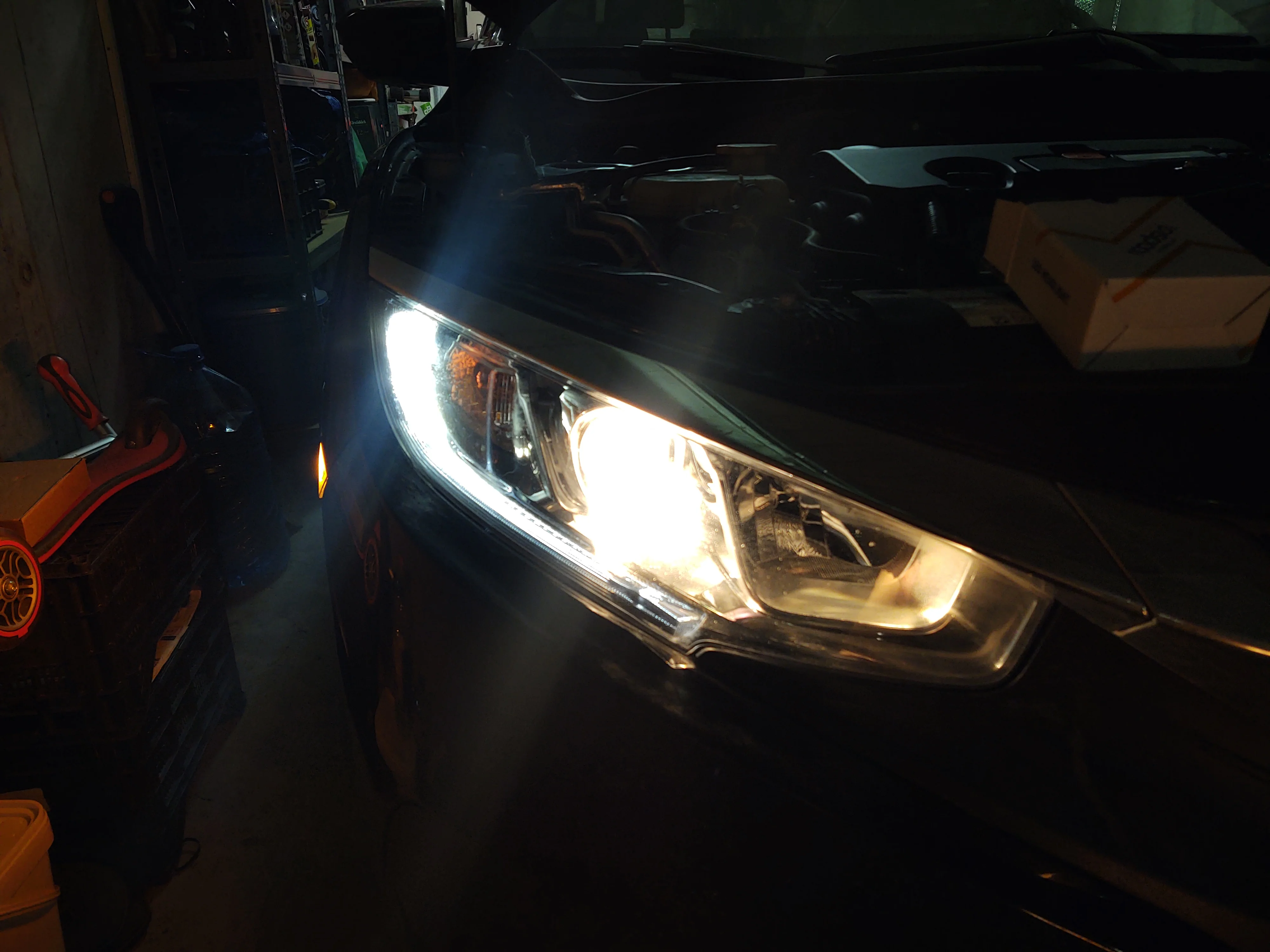L'éclairage est très bon en revanche les bagues avec les 3 ergots ne sont pas solidaire (elles tournent autours des ampoules) des ampoules ce qui rend le montage difficile et aléatoire. Ces bagues auraient dû être collées, elles sont montées sur des joints, donc elles tournent lorsque l'on met les ampoules en place