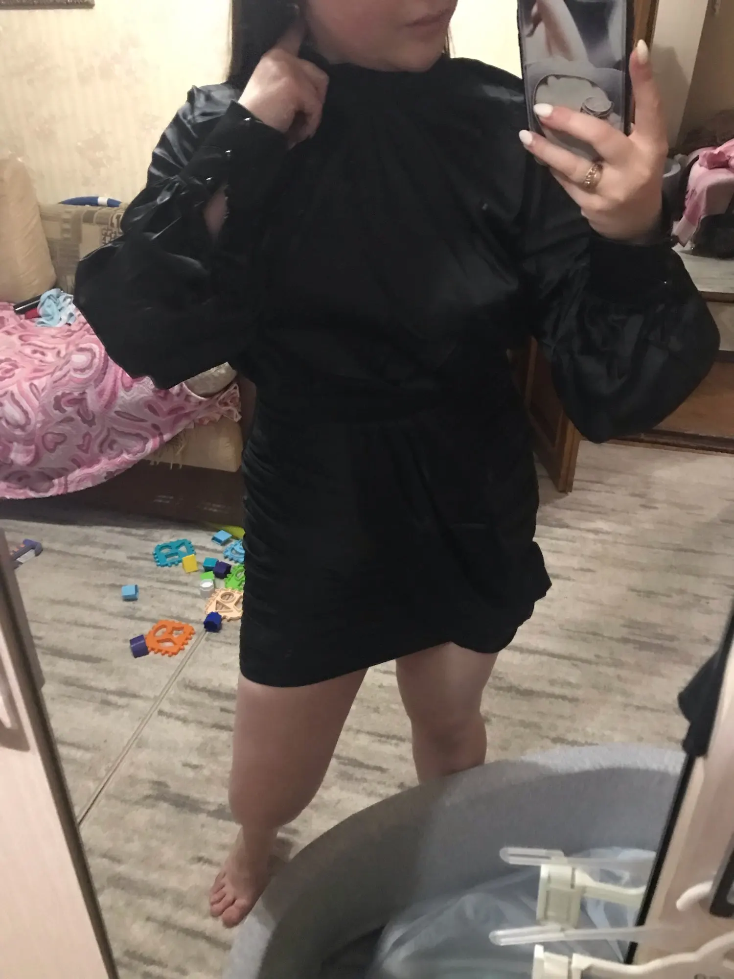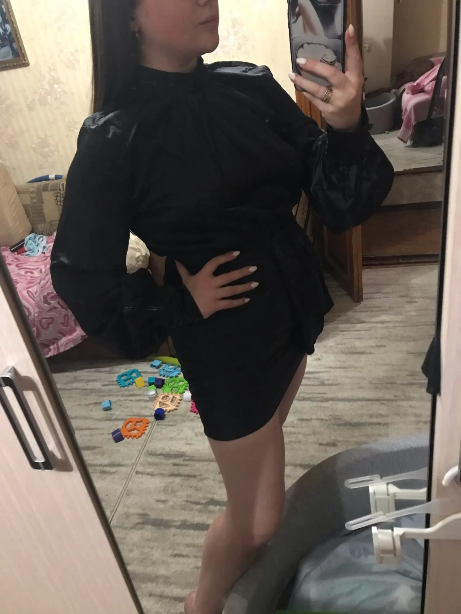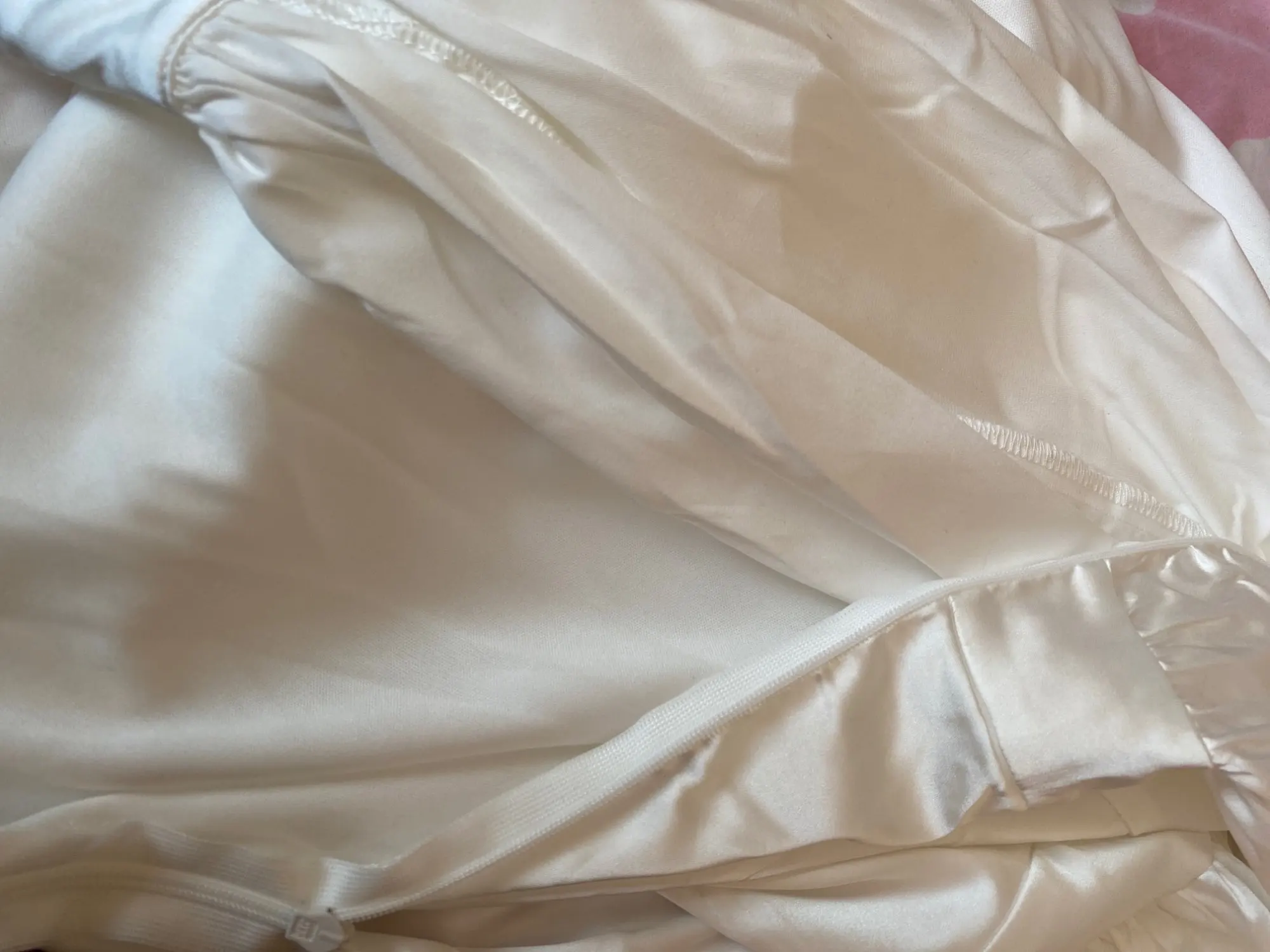 La taille est bonne, par contre la couleur n’est pas blanc cassée nacrée mais plutôt blanc nacrée donc un peu déçu car je m’attendais plutôt à une couleur blanc cassée/beige. Au niveau du buste légèrement transparent. Sinon je suis satisfaite merci !