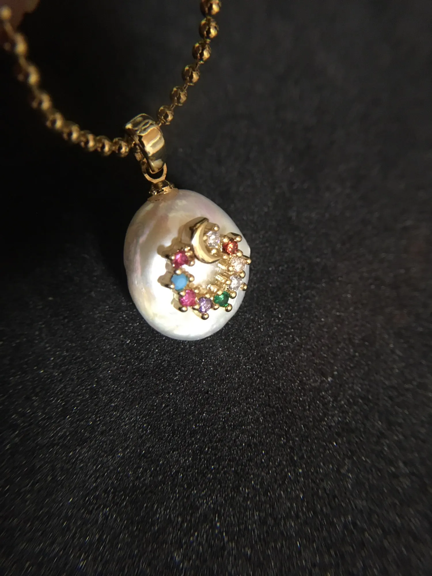 Gold Color Charms , Freshwater Pearl , Colorful Zircon , Flat Bead