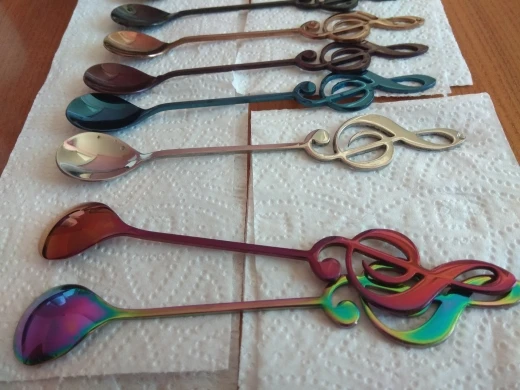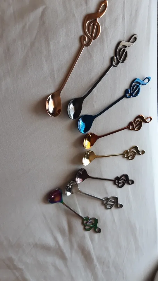 Cuillères à thé en acier inoxydable 8 couleurs petites cuillères à café cuillères à symbole musical créatif pour glaces à Dessert vaisselle pour fête de thé