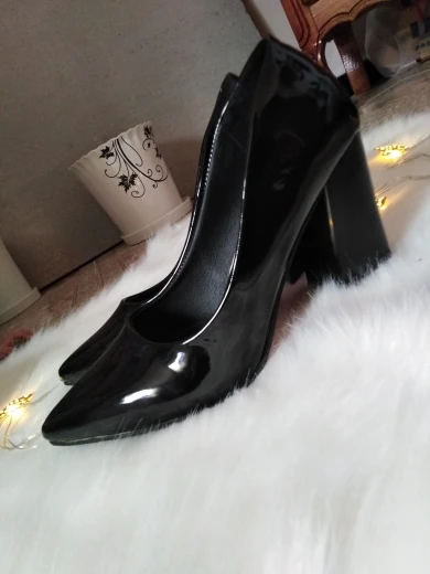Cuir verni talons hauts pompes femmes chaussures Sexy pointu talon carré pompes noir bureau femme chaussures peu profondes Slip-On chaussures de fête