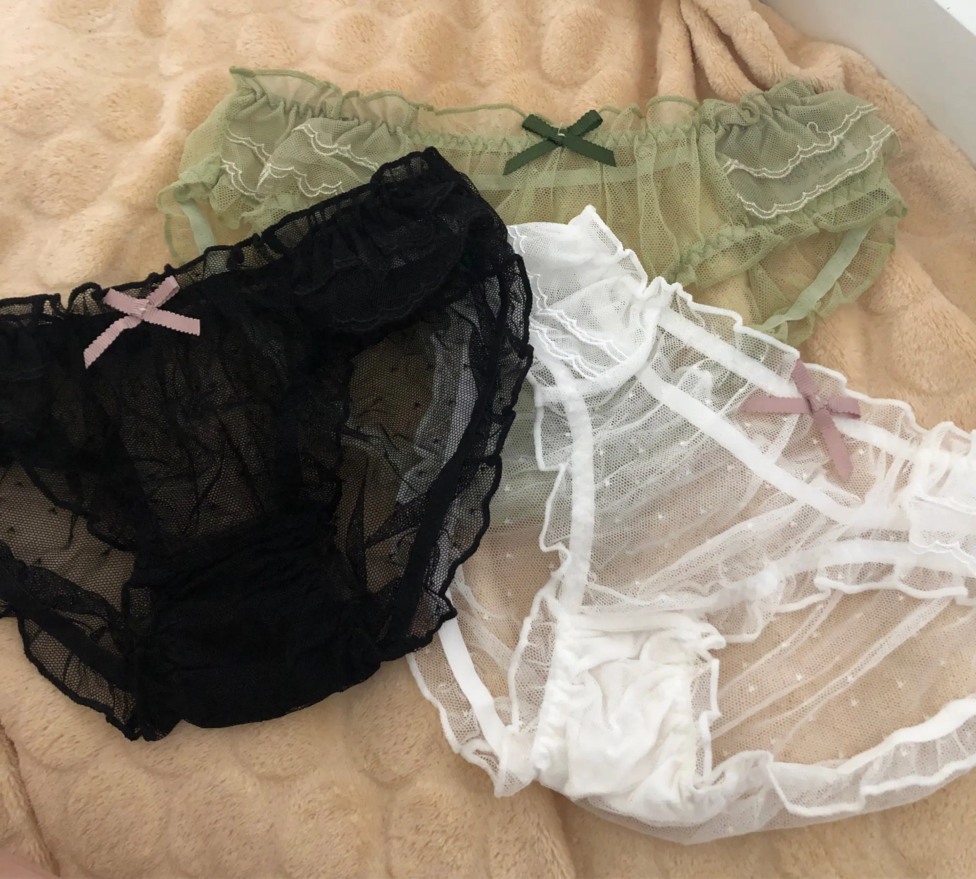 Culotte en dentelle antibactérienne pour femmes, Sexy, à pois, taille moyenne, culotte respirante confortable, grande taille