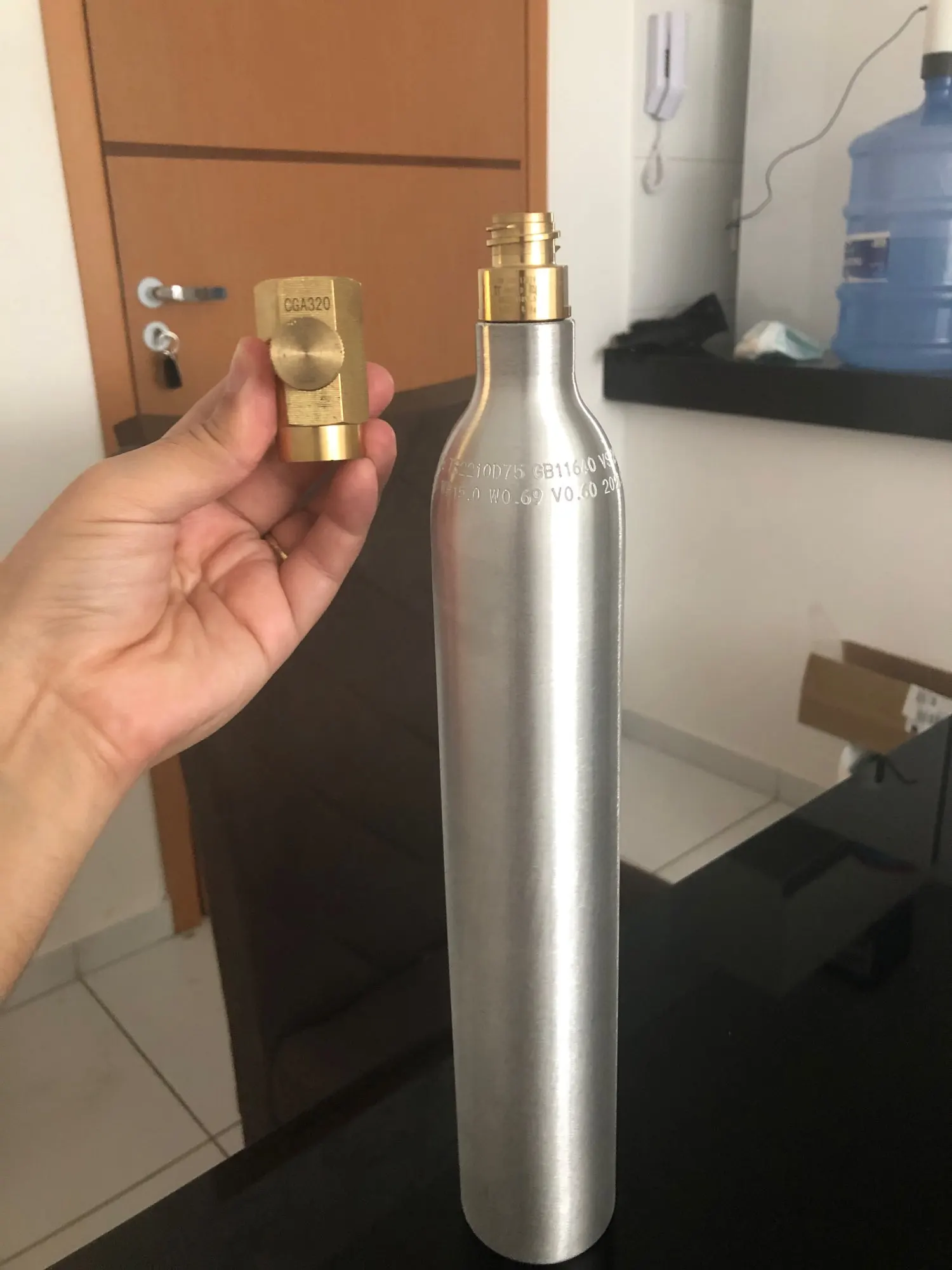 Cylindre d'eau Soda, bouteille en aluminium haute pression 0,6 l, réservoir de Soda avec Valve adaptateur de Soda de recharge W21.8 ou CGA320