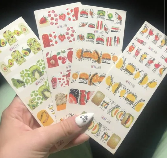 Décalcomanies pour l'eau de fruits, 12 pièces, autocollants pour les ongles, conceptions pastèque/kiwi/banane/citron/fraise, pour décoration pour ongles, 2022