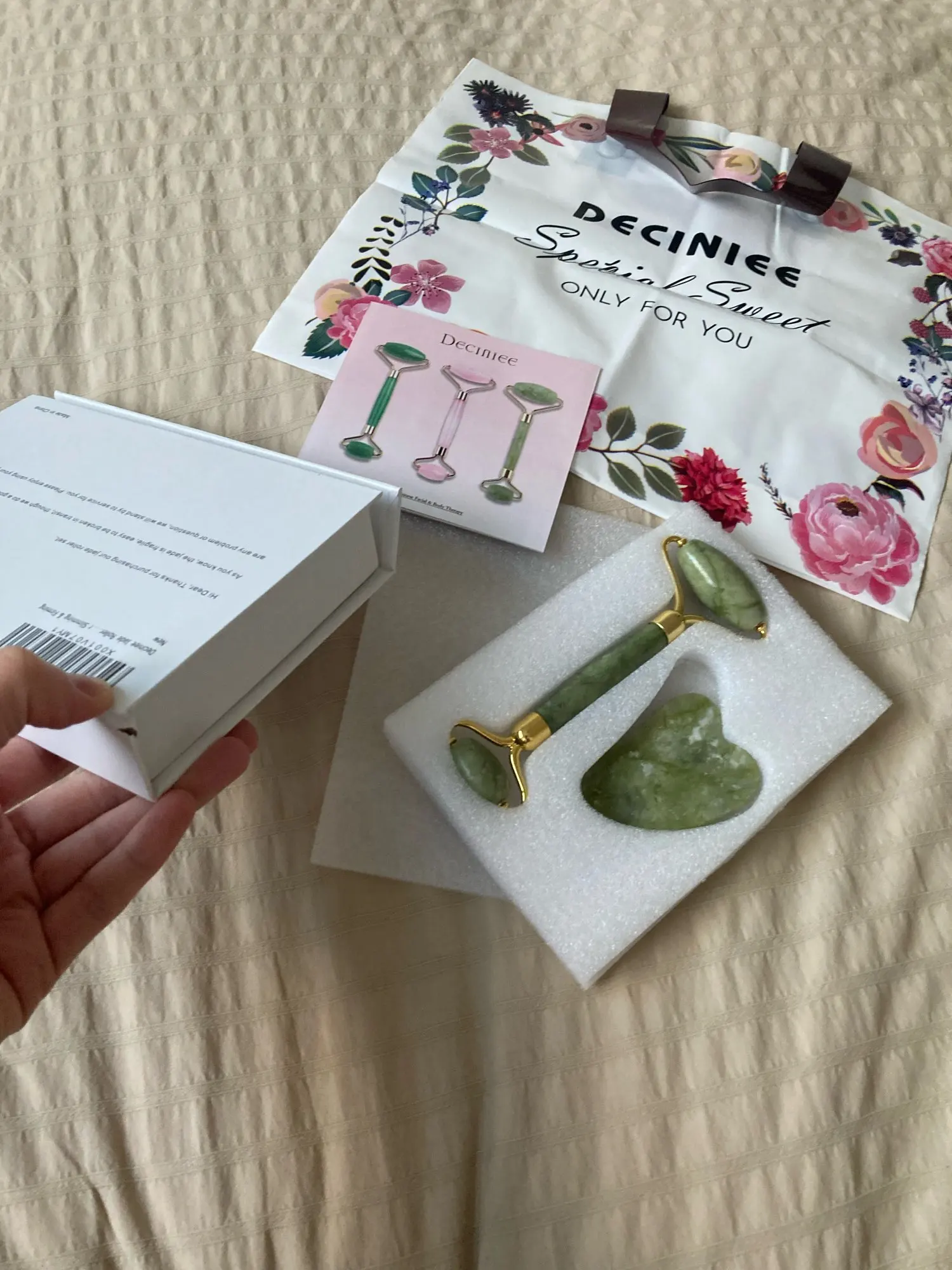 Deciniee Rose Quartz Jade rouleau Gua Sha ensemble minceur visage masseur visage levage rouleau naturel Jade rouleau avec boîte de sac cadeau