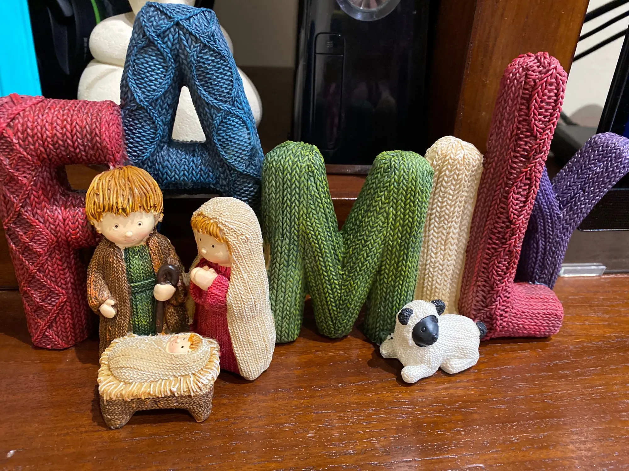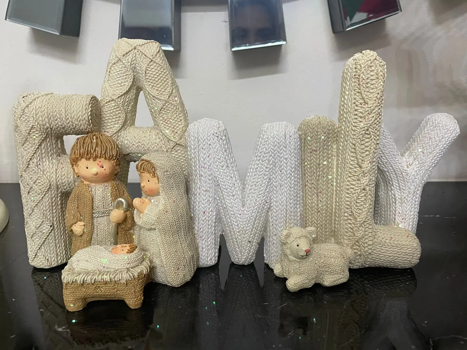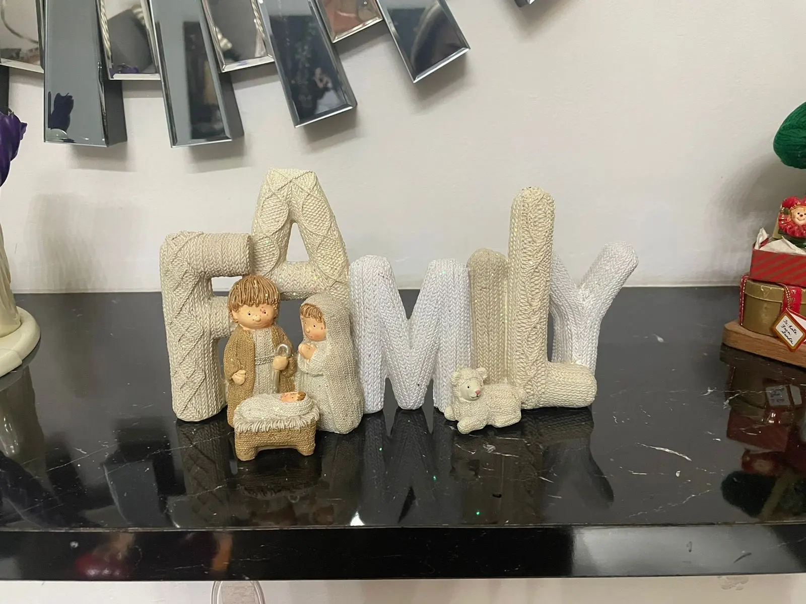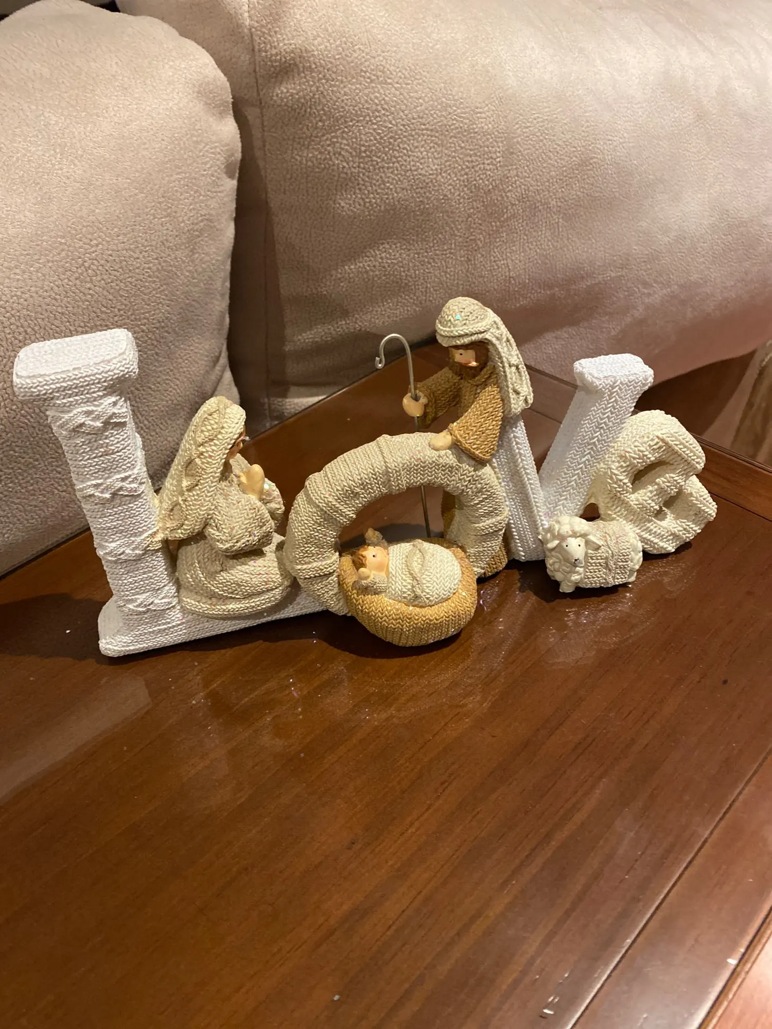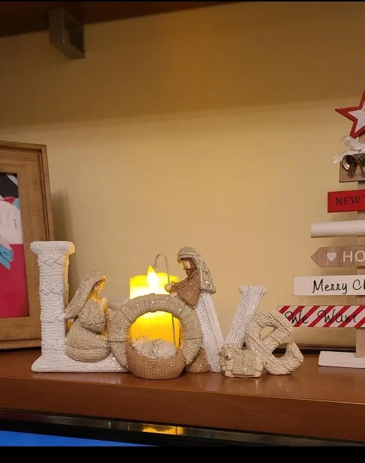 Décor de noël élégant nativité ensemble nativité ornement sainte famille amour délicieux belle lettre résine artisanat ornement