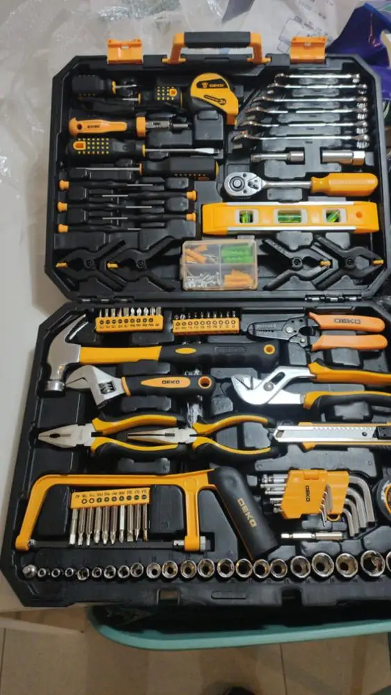 DEKO TZ168 clé à douille ensemble d'outils réparation automatique mixte outil combinaison paquet trousse à outils à main avec boîte à outils en plastique maison bricolage