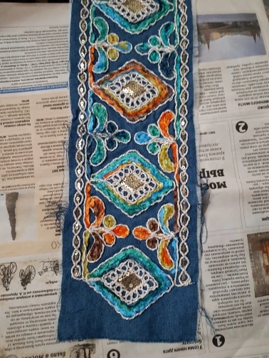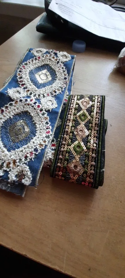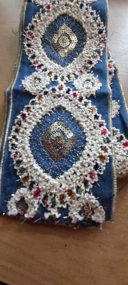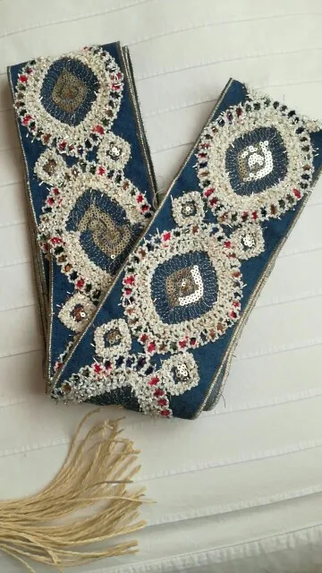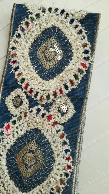 Denim brodé 1 Yard, en dentelle à paillettes, ruban d'habillage ethnique népalais, thaï, indien, Boho, décoration à réaliser soi-même