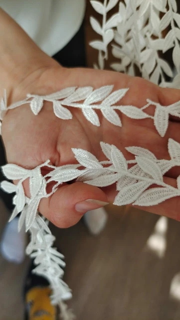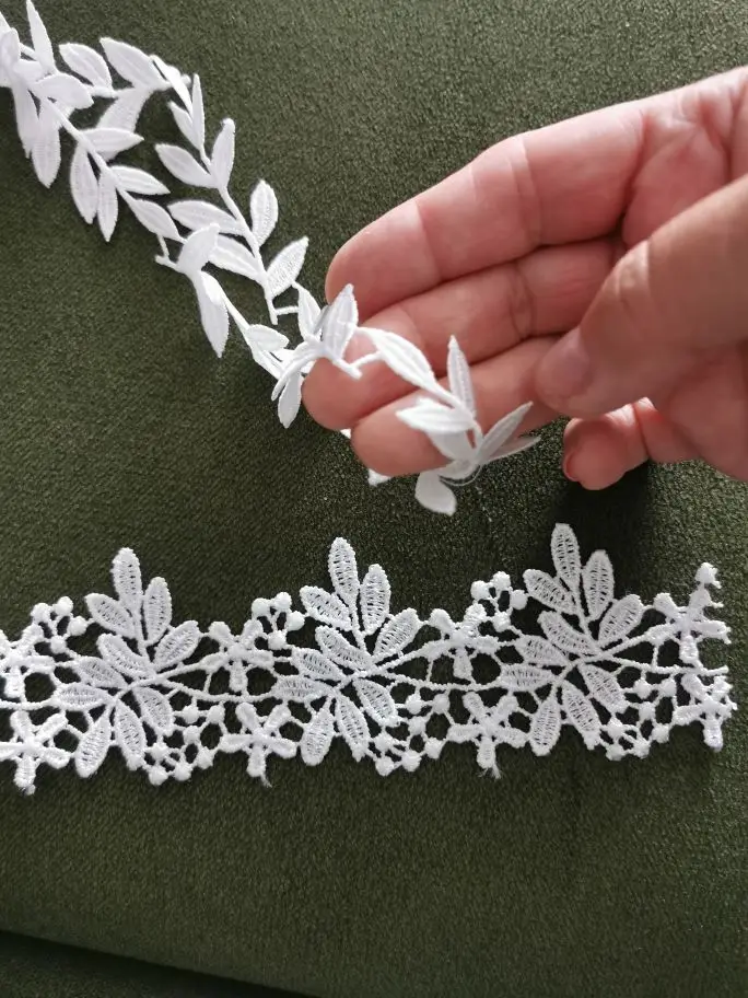 Dentelle de haute qualité 1 mètre 91cm | Tissu de dentelle de haute qualité 2cm, feuille blanche, dentelle brodée, garnitures de ruban, couture, col de mariage, dentelle F32