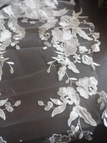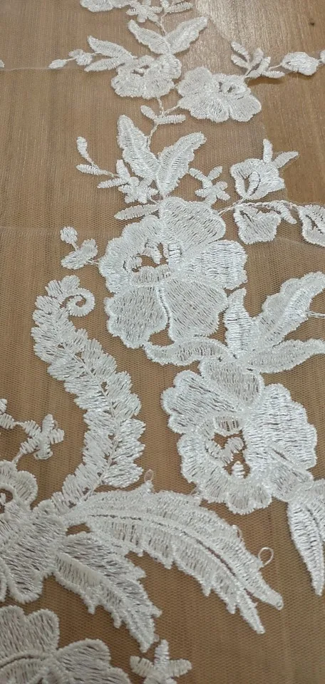 Dentelle française perles à la main robe de mariée Applique bricolage coiffure de mariée ivoire blanc dentelle col dentelle tissu Patch HB82W