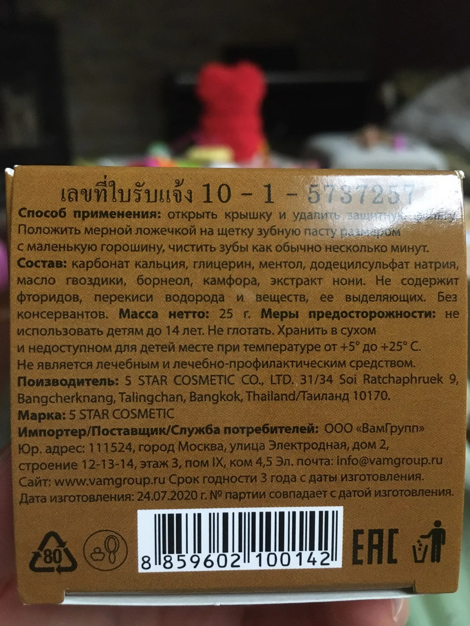 Dentifrice cosmétique 5 étoiles aux herbes et extrait de Noni, 25 g 4505573 hygiène bucco-dentaire