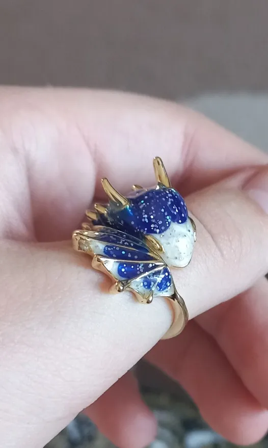 Design Original ciel étoilé petit dragon bleu anneau d'ouverture coloré frais et unique artisanat charme femmes bijoux en argent