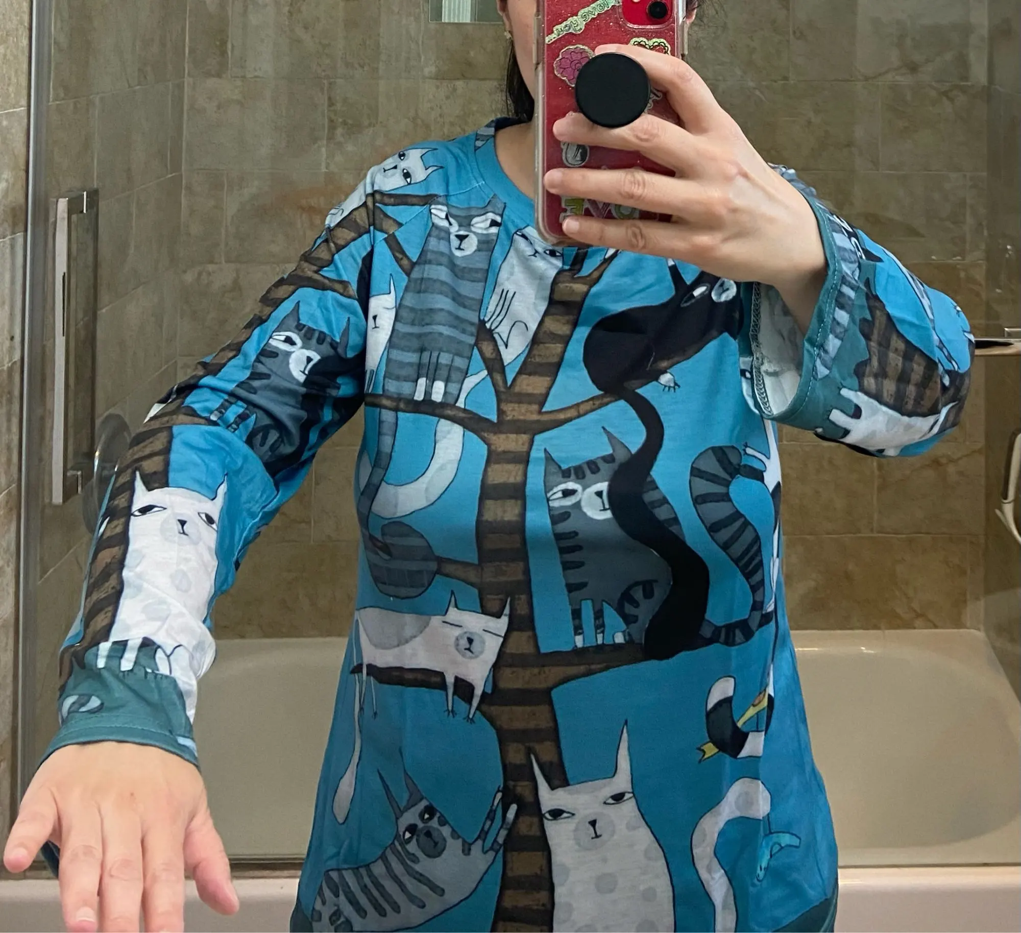 Dessin animé chats sur l'arbre impression t-shirt à manches longues haut pour Femme grande taille T-shirts décontracté és 2XL 3XL rond Beck chemises amples Femme