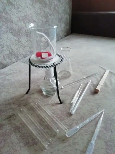 Dispositif d'expérimentation chimique, bécher + trépied + flacon Erlenmeyer en verre + lampe à alcool + thermomètre à tige, etc.(14 pièces de produits)
