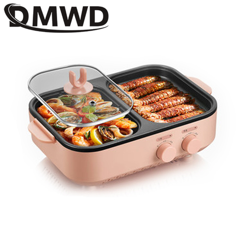 DMWD – Grill électrique multifonctions, plaques de cuisson pour Barbecue sans fumée, casserole chaude, Steak, BBQ coréen, antiadhésif, Machine à viande grillée