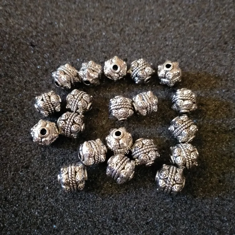 Doreen boîte chaude-perles breloque pétanque sculptée couleur argent 11x10mm,20 pièces (B22203)