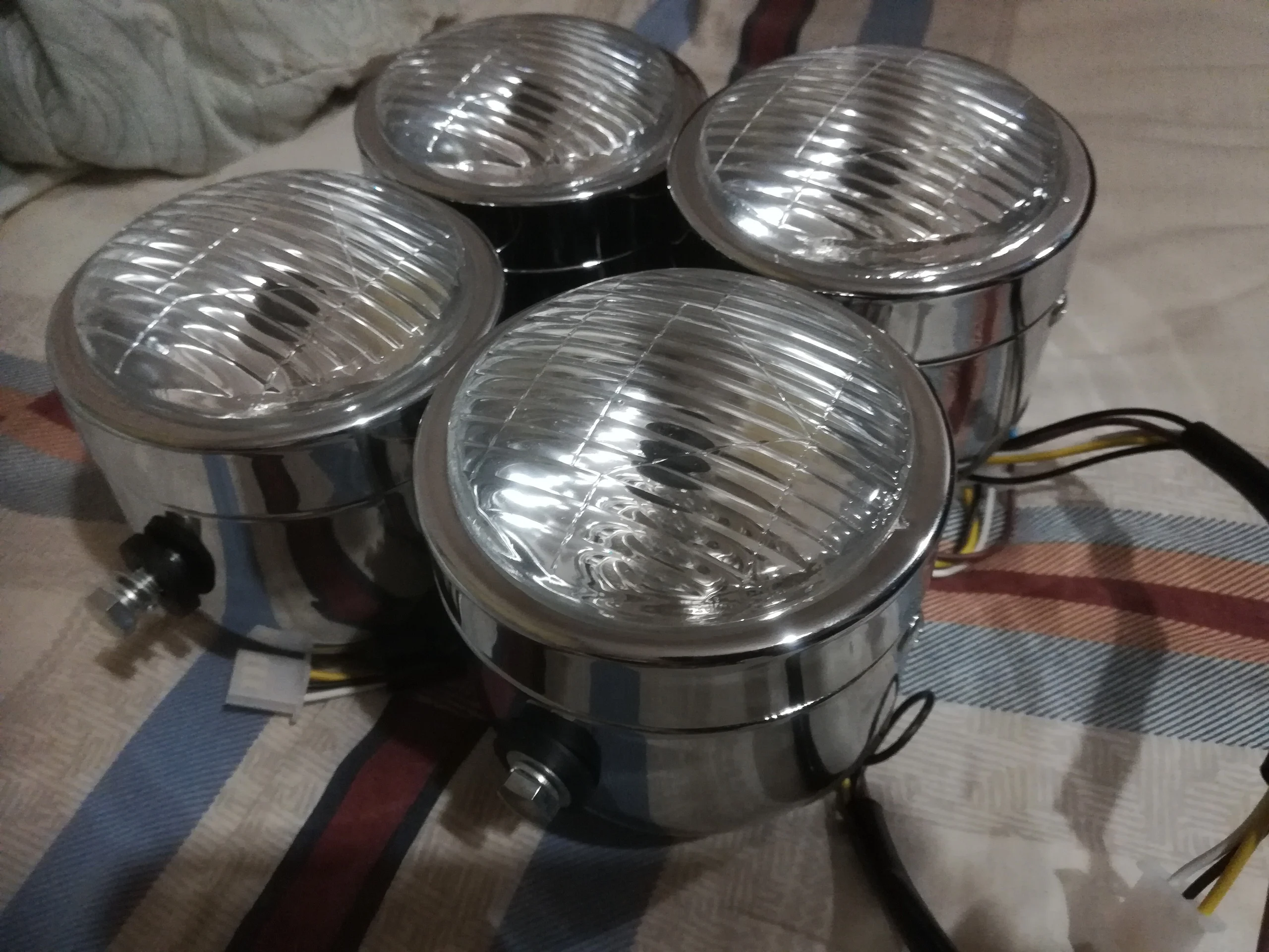 Double grille de maille pour Harley Cafe Racer Chopper, phare avant Double Dominator + support de montage Double éclairage rond H4