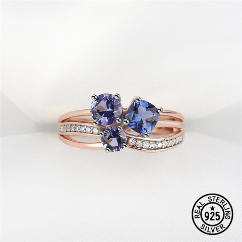Dysonbijoux 925 bague en argent Sterling pour les femmes créré pierres précieuses Tanzanite plaqué or Rose délicat luxe bijoux fins