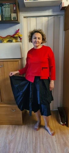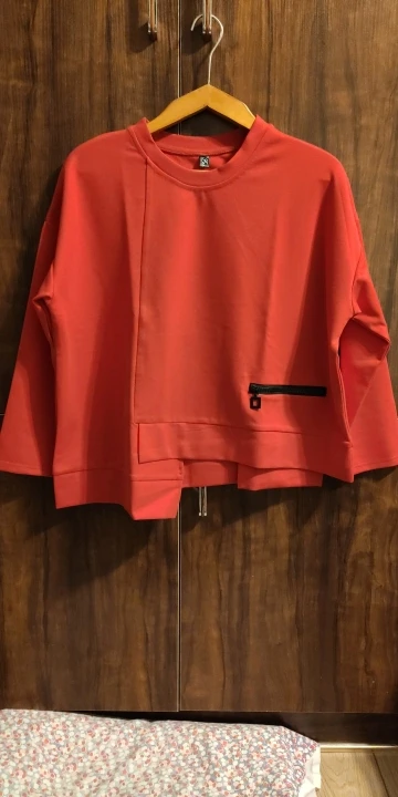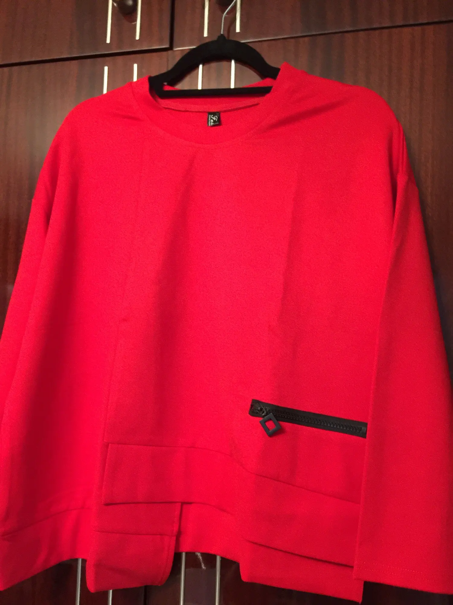 EAM – T-shirt à manches longues et col rond pour femme, à la mode, rouge, irrégulier, fendue, grande taille, 1DA605, printemps automne 2022