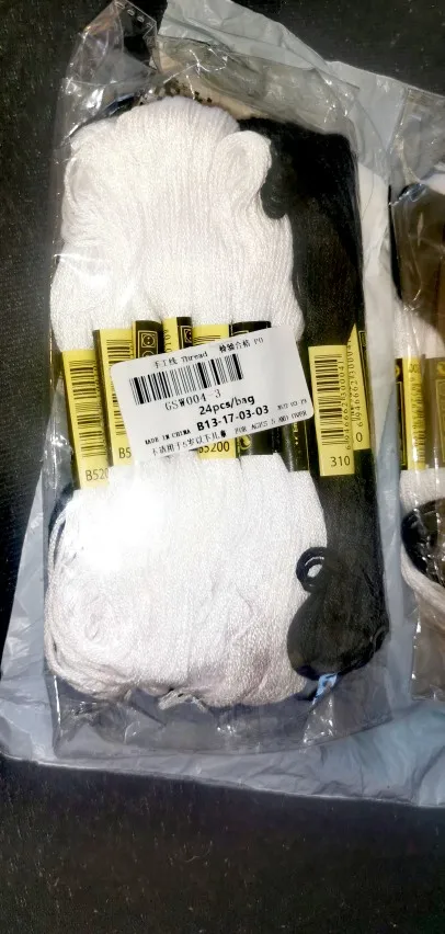 Écheveaux de fils de couture en coton blanc + 12 noirs pour broder le point de croix DMC, 12 blancs et 12 noirs, pour broder le point de croix