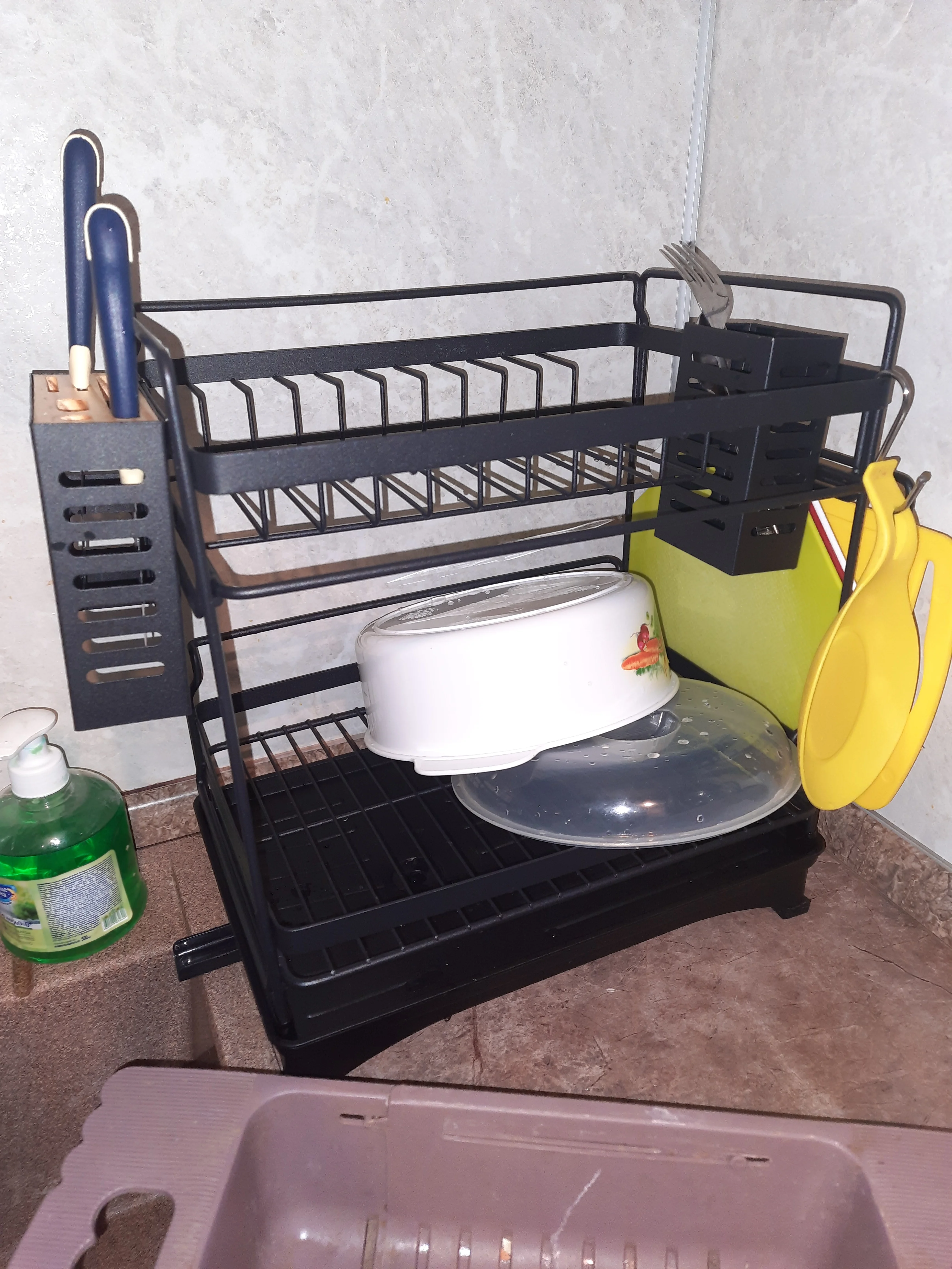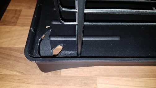 Arrivé bien emballé mais malgré tout un angle cassé Par contre très pratique pour nous quand même Reparetion à la glue !