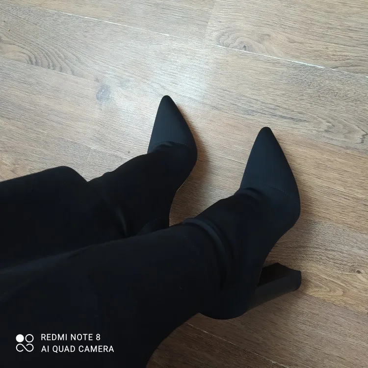 Eilyken – bottines à talons hauts et carrés pour femme, chaussures confortables, extensibles, noires, à bout pointu, grandes tailles, collection automne 2022