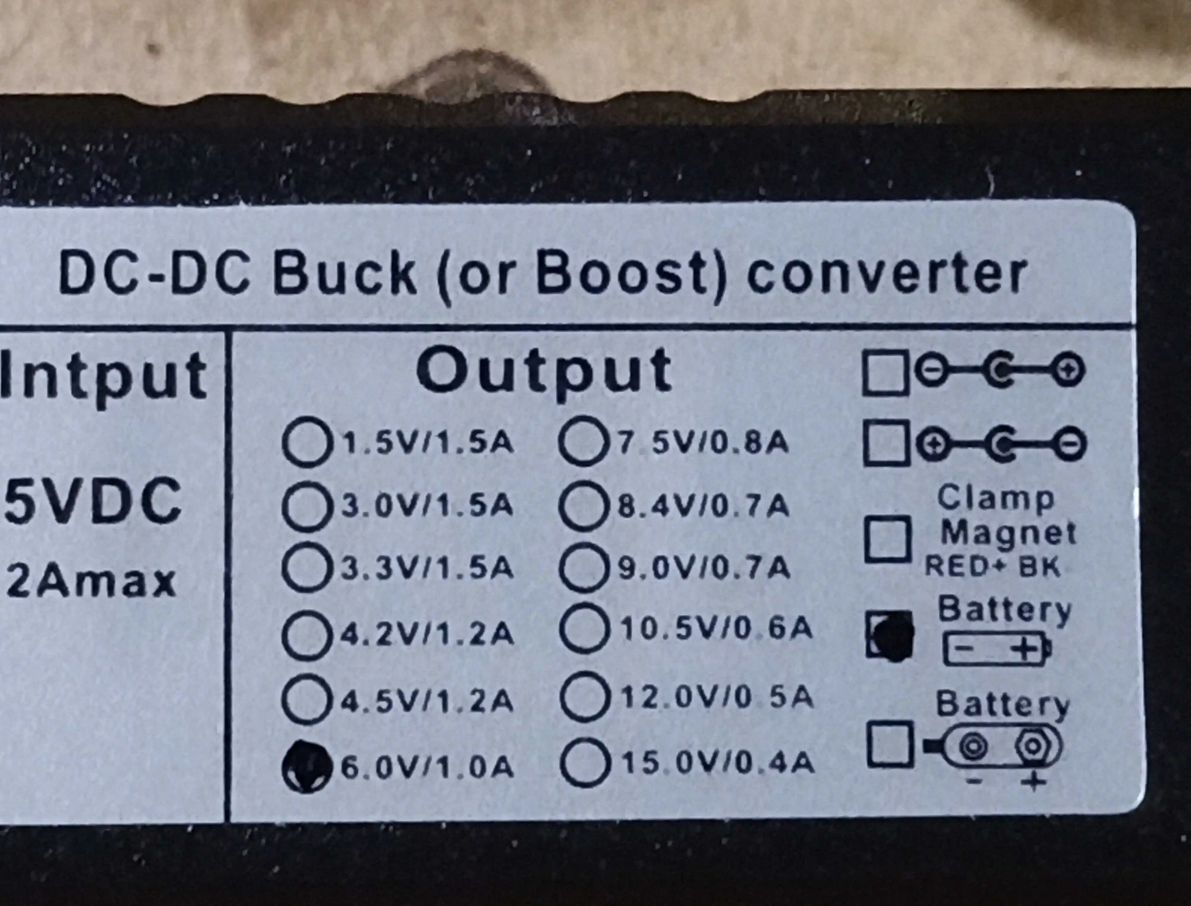 DC 1.5V/1.5A,3V/1.5A,4.5V/1.2A,6V/1A Max(optional)