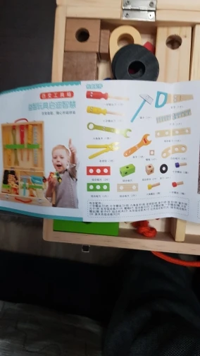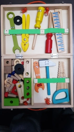 J'ai du mettre de la colle dès le premier jour sur le tournevis et la boîte en bois n'est pas très solide mais mon fils adore jouer avec les outils. Le colis est arrivé après Noël...